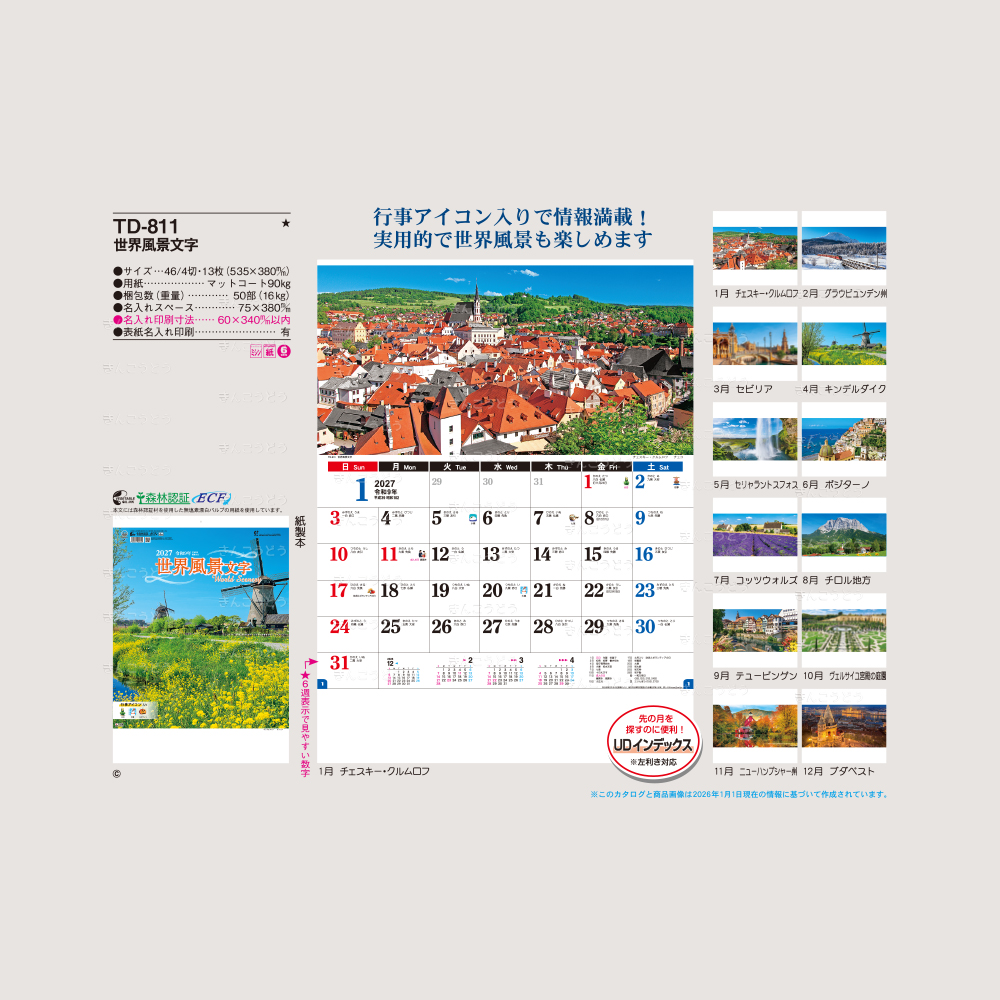 行事アイコン入りで情報満載!実用的で世界風景も楽しめます