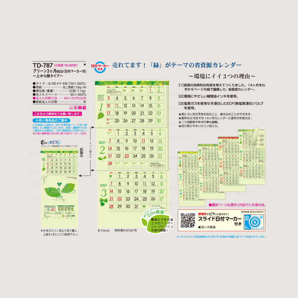 【TD-787】グリーン3ヶ月eco(日付マーカー付)-上から順タイプ-