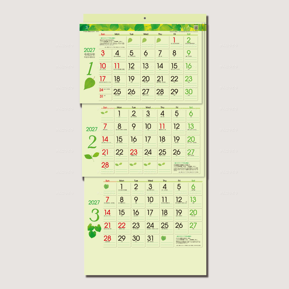 TD-787 グリーン3ヶ月eco(日付マーカー付)-上から順タイプ-(B/3切タテ・6枚・750×350㎜)