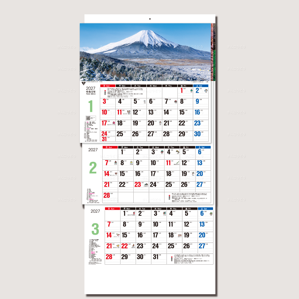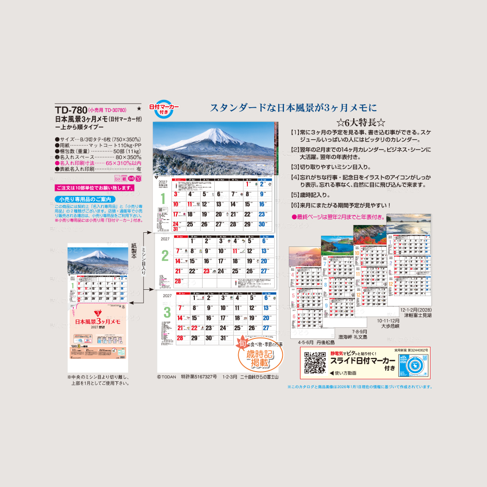 【TD-780】日本風景3ヶ月メモ(日付マーカー付) -上から順タイプ-
