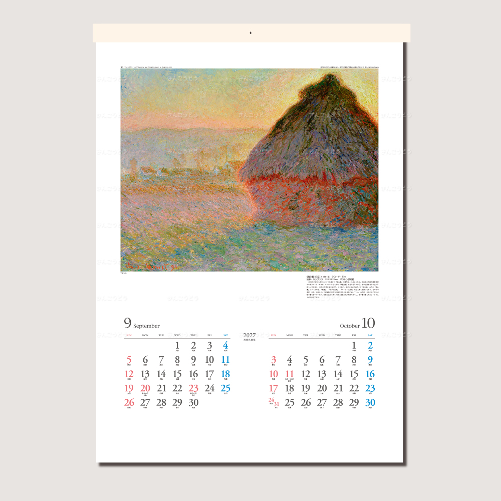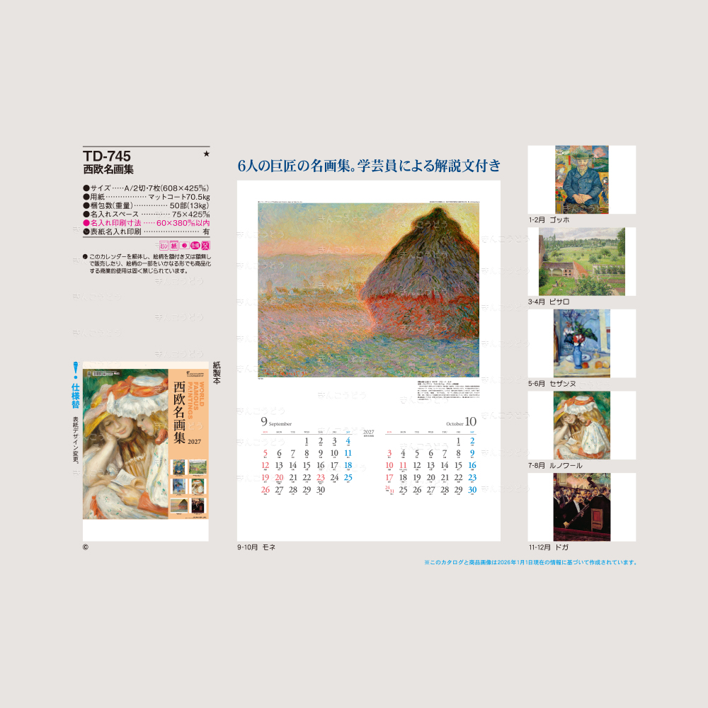 ●1-2月・ルノワール ●3-4月・ゴッホ ●5-6月・セザンヌ ●7-8月・モネ ●9-10月・カサット ●11-12月・ピサロ