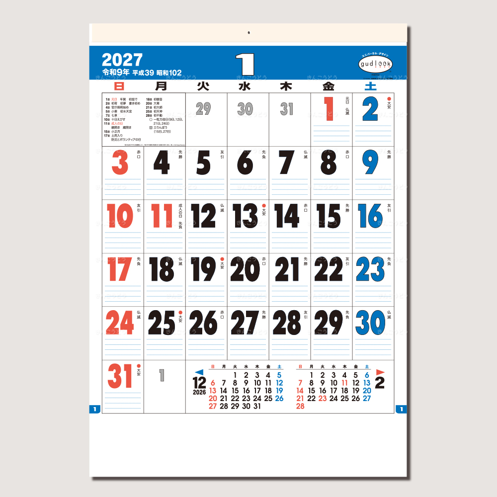 日付の見やすさ圧倒的、大好評UDカレンダー