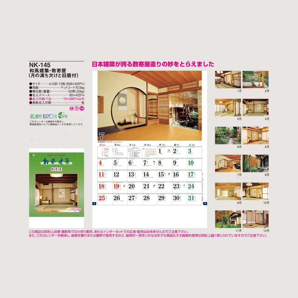 ※こちらの商品は『和風建築・数奇屋(月の満ち欠けと旧暦付)NK-145』と同じです。
