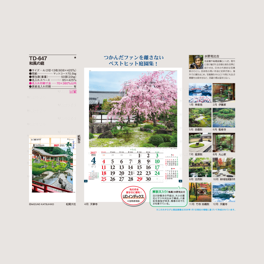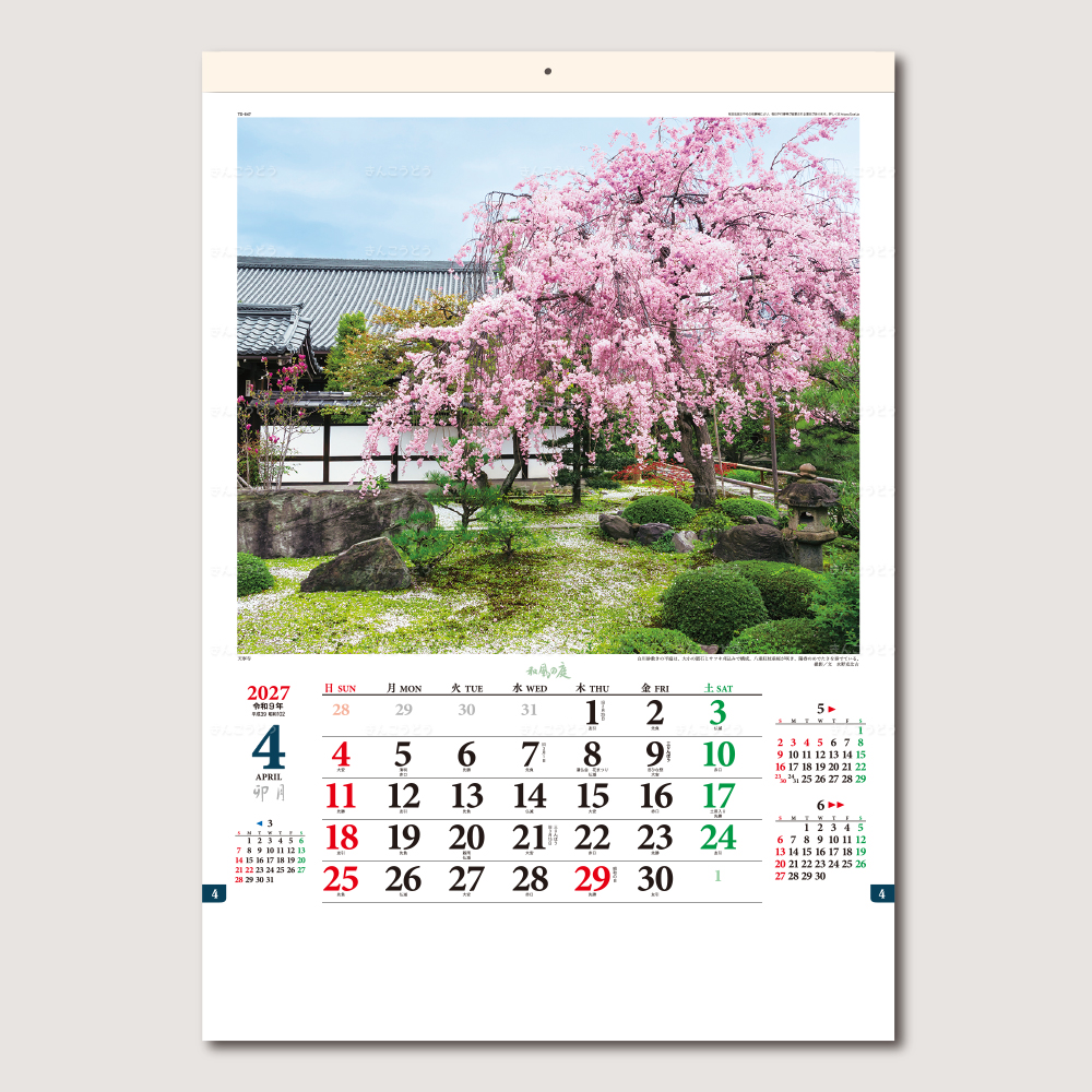 日本各地の四季折々の美しい庭風景を厳選しました。様々な自然を表現し、日本の情緒あふれる庭園のカレンダーです。