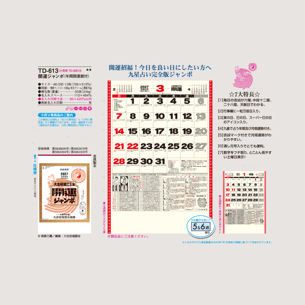 TD-613 開運ジャンボ(年間開運暦付)(46/2切・13枚・756×515mm)