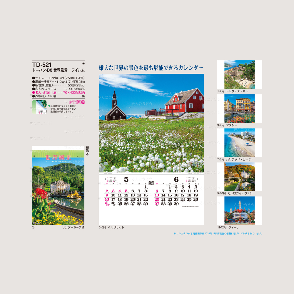 ●表紙・リンダ―ホーフ城 ●1-2月・トッサ・デ・マル ●3-4月・アヌジー ●5-6月・イルリサット ●7-8月・ハリウッド・ビーチ ●9-10月・カルロヴィ・ヴァリ ●11-12月・ウィーン