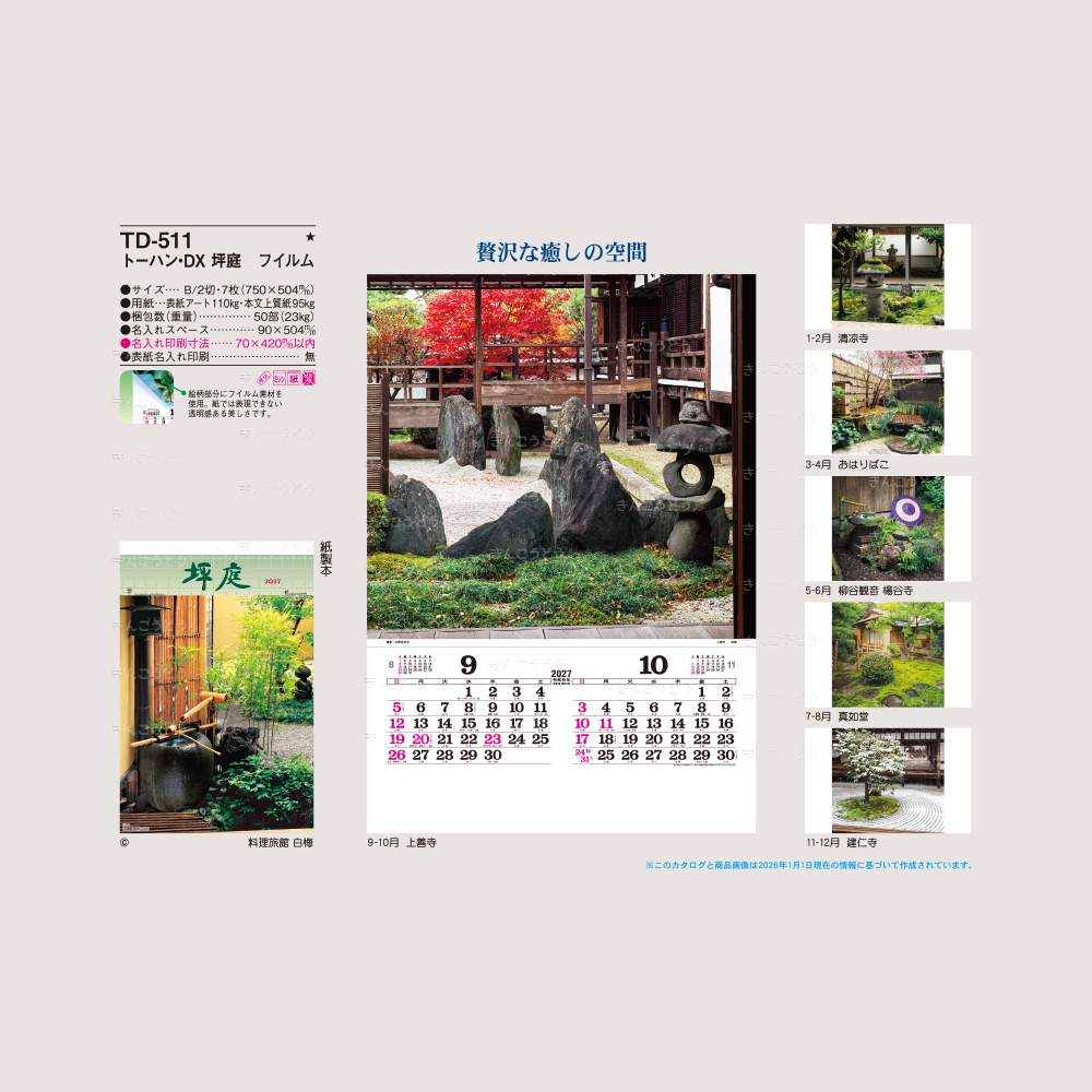 ●表紙・料理旅館 白梅 ●1-2月・清涼寺 ●3-4月・おはりばこ ●5-6月・ 柳谷観音 楊谷寺 ●7-8月・真如堂 ●9-10月・上善寺 ●11-12月・建仁寺