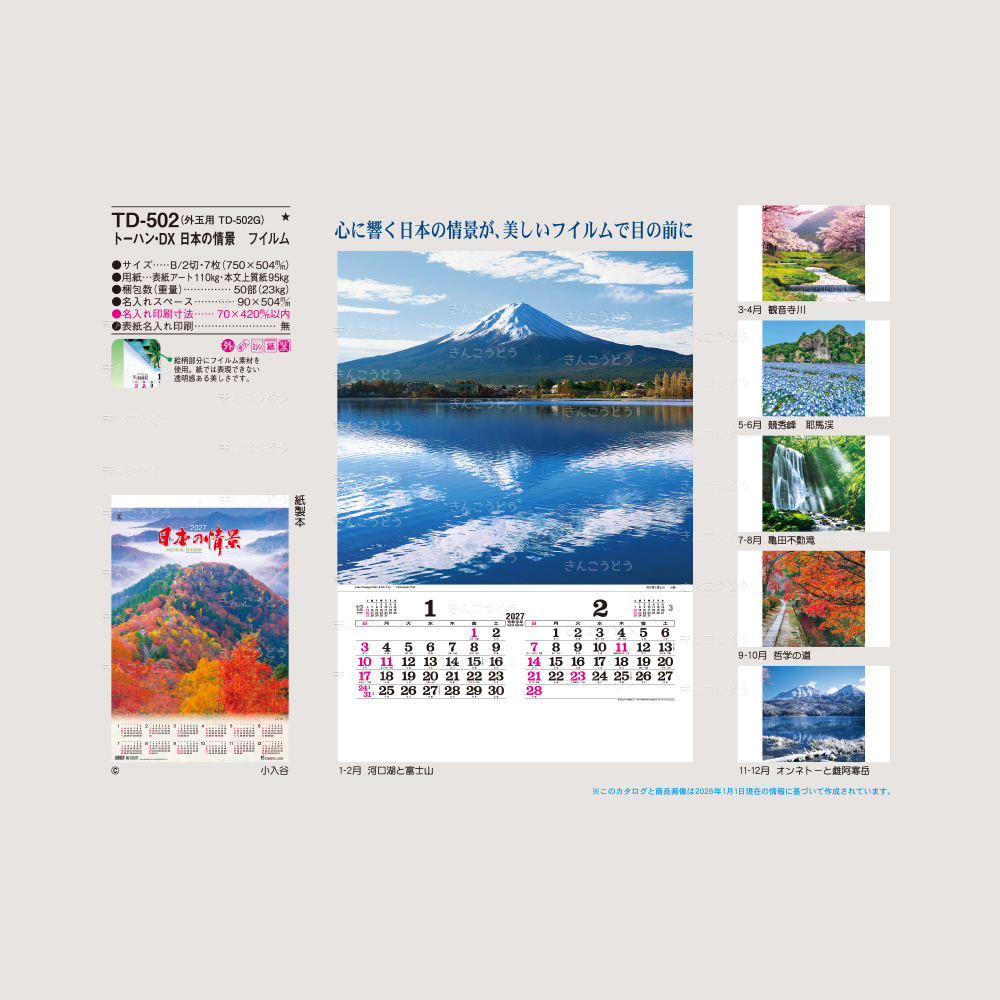 日本の代表的な、美しい景色のフィルムカレンダーです。