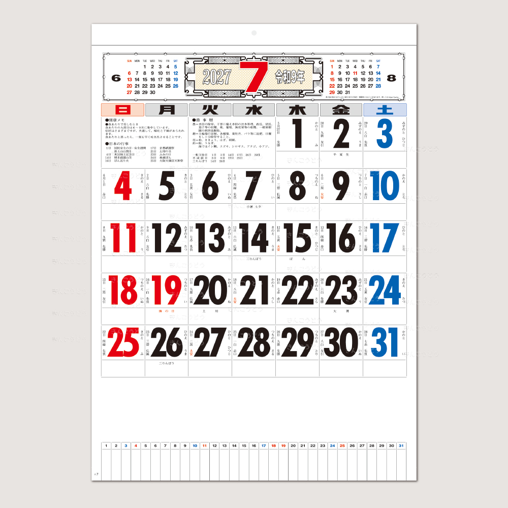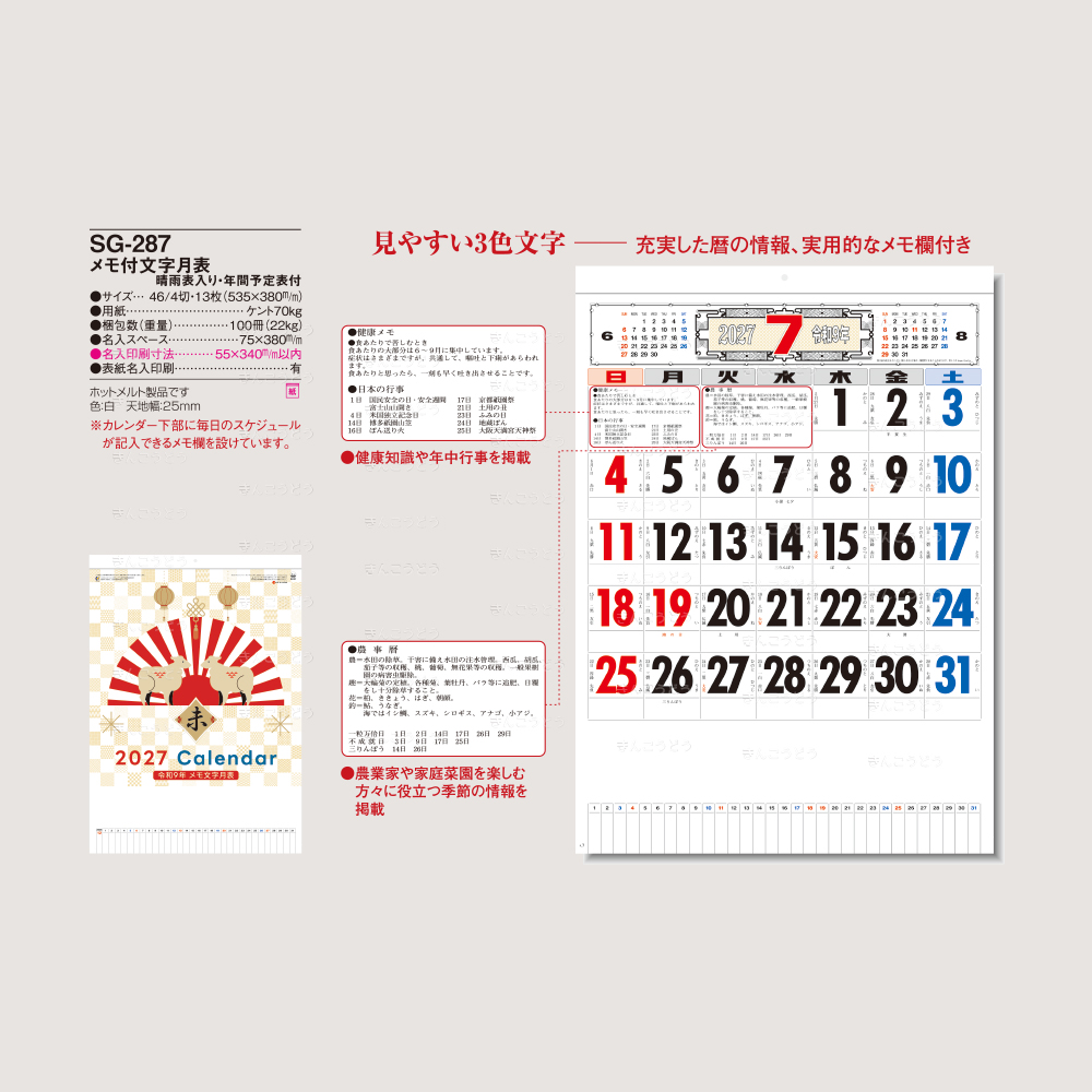 【SG-287】メモ付文字月表 晴雨表入り・年間予定表付