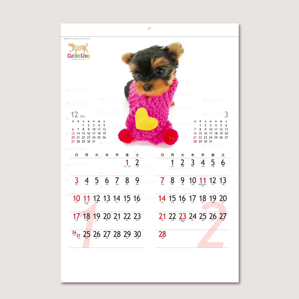 ●1-2月・ヨークシャー・テリア ●3-4月・トイ・プードル ●5-6月・ラブラドール・レトリバー ●7-8月・キャバリア・キング・チャールズ・スパニエル ●9-10月・柴犬 ●11-12月・フレンチ・ブルドッグ