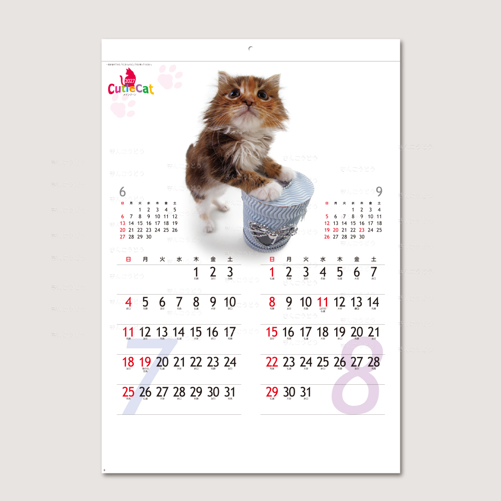 お待たせしました。猫ファン待望の子猫だけを集めたカレンダーの登場です。この純真な表情を見るたびに、猫ファンならずとも多くの方の微笑を誘います。動物病院をはじめ、女性や子ども、または高齢者の方が多く出入りするお店などにおすすめです。