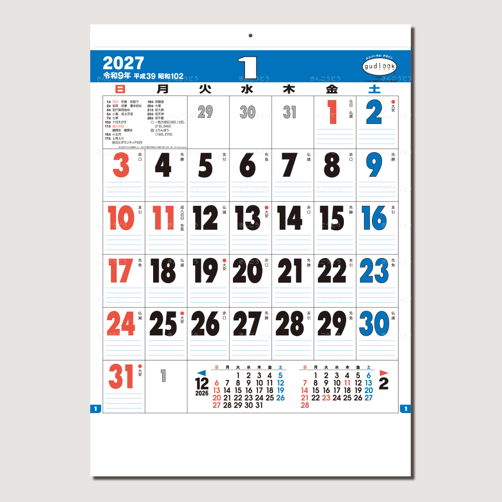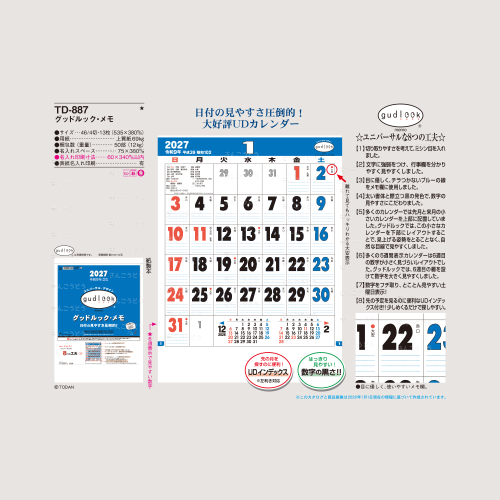 日付の見やすさ圧倒的、大好評UDカレンダー!