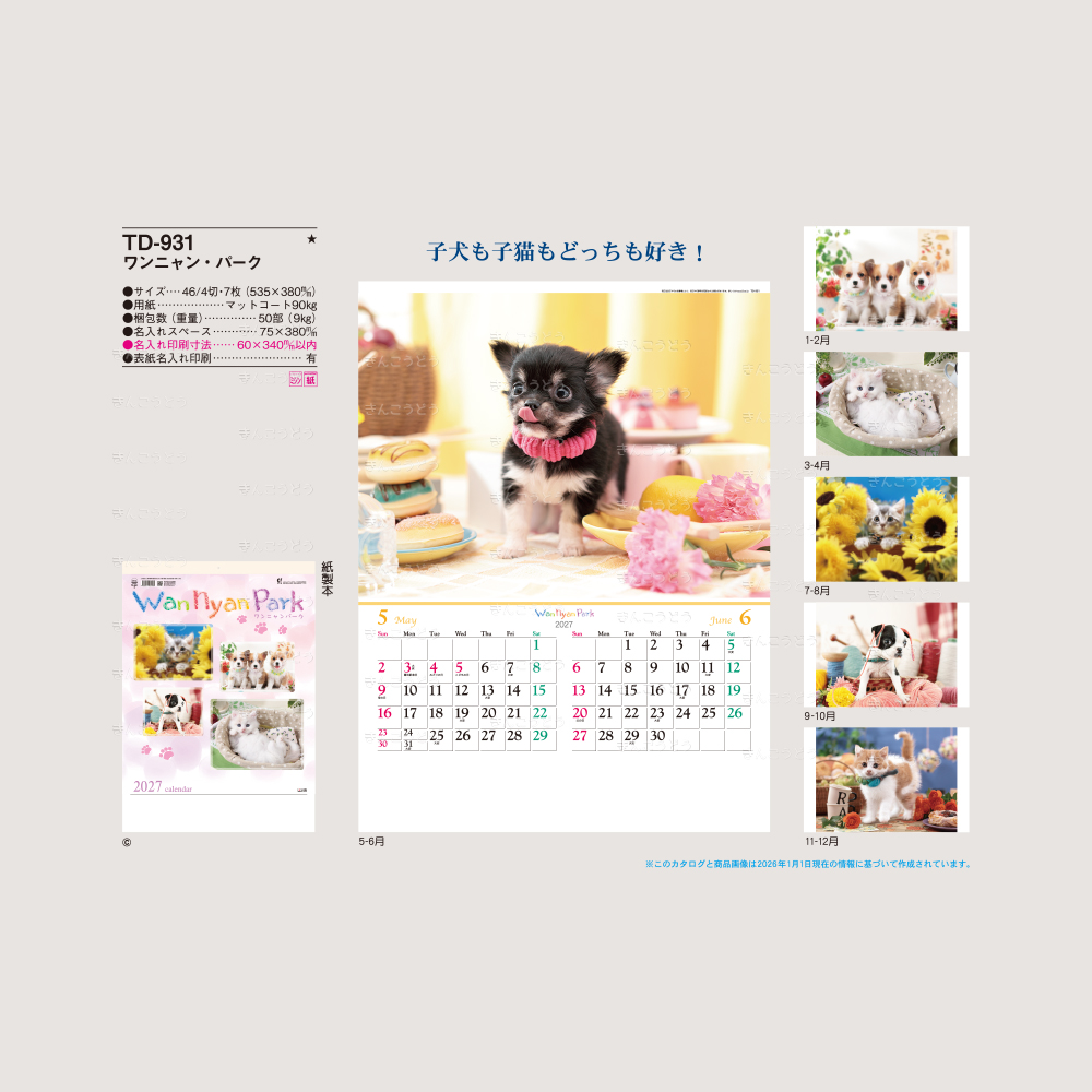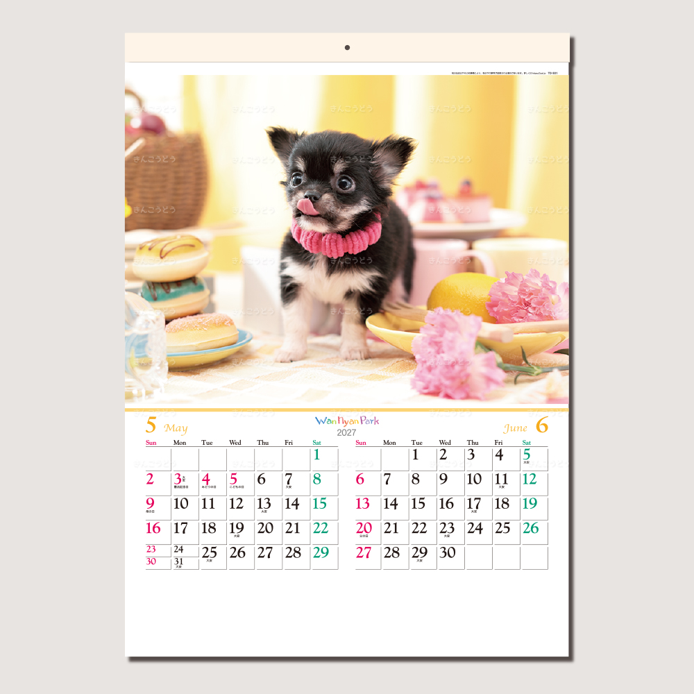 TD-775 ワンニャン3ヶ月(日付マーカー付) -上から順タイプ- (B/3切タテ・6枚・750×350mm)
