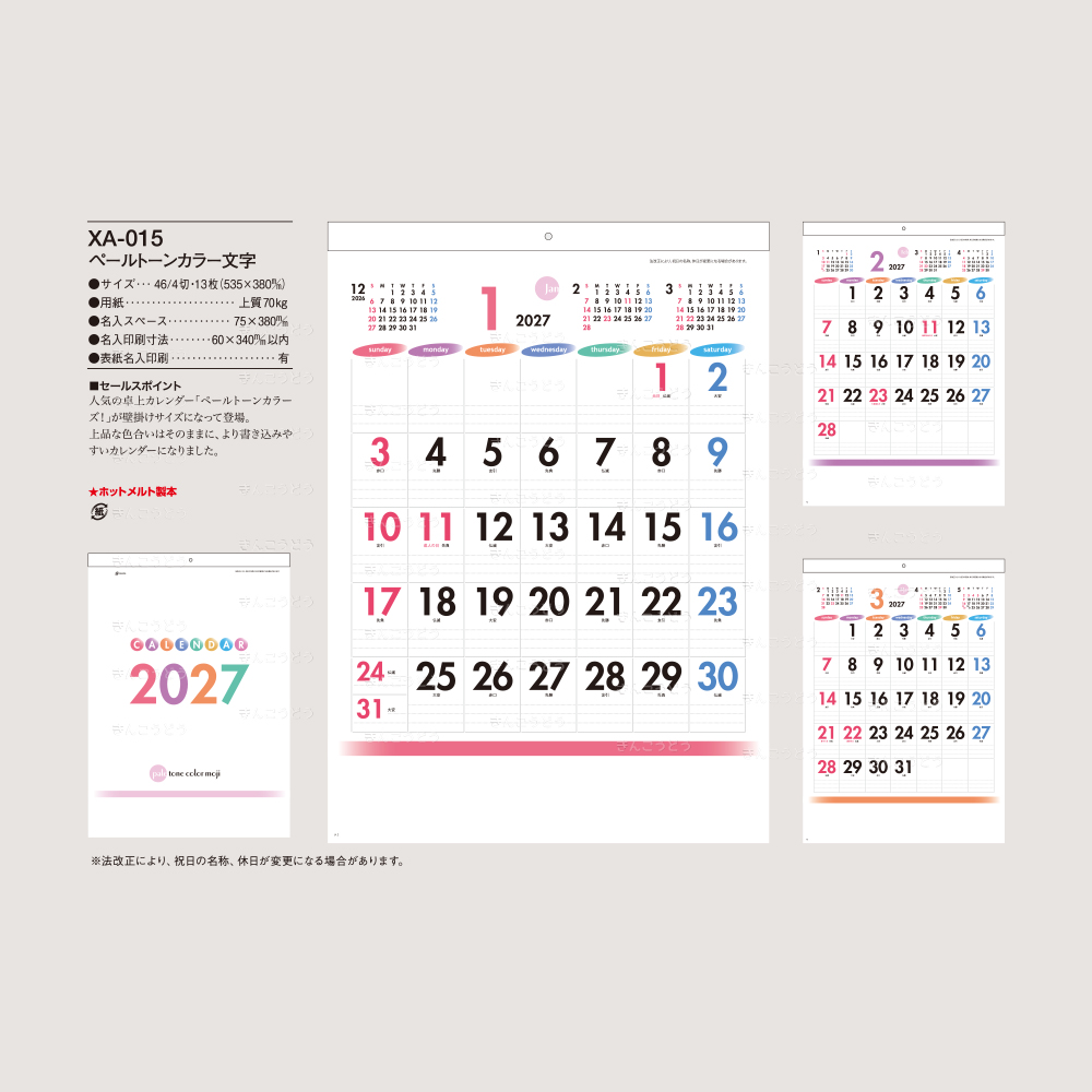 人気の卓上カレンダー「ペールトーンカラーズ」が壁掛けサイズになって登場。