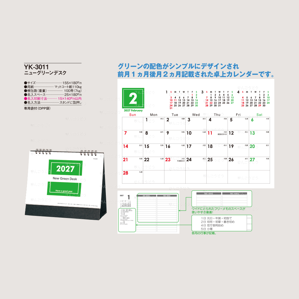 既製品カレンダーからお好きな商品・豊富な品揃えでお好みの品番のカレンダーに名入れをしてお届けいたします。